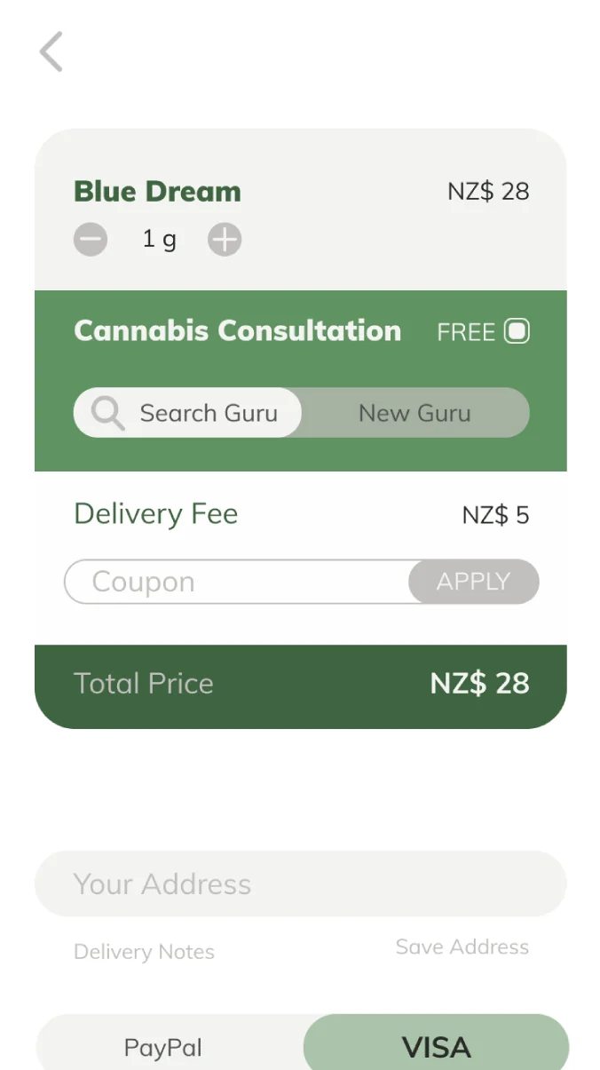 Once you’ve made your selection, you’ll get to review the cost, total potency and estimated delivery time to your chosen location.