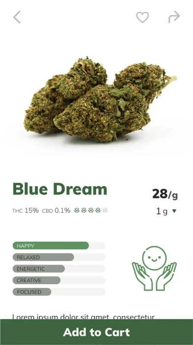 Blue Dream Blue Dream, a sativa-dominant hybrid originating in California, has achieved legendary status among West Coast strains. Crossing a Blueberry indica with the sativa Haze, Blue Dream balances full-body relaxation with gentle cerebral invigoration. Happy Relaxed Energetic Focused Creative Bubba Kush Bubba Kush is an indica strain that has gained notoriety in the U.S. and beyond for its heavy tranquilizing effects. Sweet hashish flavors with subtle notes of chocolate and coffee come through on the exhale, delighting the palate as powerful relaxation takes over. Happy Relaxed Energetic Focused Creative Hawaiian Snow A 2003 Cannabis Cup winner, Hawaiian Snow is a trifecta of Haze genetics, combining Neville’s Haze, Pure Haze, and Hawaiian Haze into one superior sativa line. It has all the features one might expect from its genetic lineage: a tall, stretchy structure, slow flowering time. Happy Relaxed Energetic Focused Creative Products As part of our commitment to a green New Zealand, we prioritize sustainability in both packaging and cultivation. Ethically home-grown, pesticide-free & potency-controlled; every flower, pre-roll, extract or edible comes with the guarantee of quality and consistency. Indica, sativa & hybrid strains come in color coded packaging, with THC/CBD ratios explicitly listed. Blue Dream Blue Dream, a sativa-dominant hybrid originating in California, has achieved legendary status among West Coast strains. Crossing a Blueberry indica with the sativa Haze, Blue Dream balances full-body relaxation with gentle cerebral invigoration. Happy Relaxed Energetic Focused Creative Bubba Kush Bubba Kush is an indica strain that has gained notoriety in the U.S. and beyond for its heavy tranquilizing effects. Sweet hashish flavors with subtle notes of chocolate and coffee come through on the exhale, delighting the palate as powerful relaxation takes over. Happy Relaxed Energetic Focused Creative Hawaiian Snow A 2003 Cannabis Cup winner, Hawaiian Snow is a trifecta of Haze genetics, combining Neville’s Haze, Pure Haze, and Hawaiian Haze into one superior sativa line. It has all the features one might expect from its genetic lineage: a tall, stretchy structure, slow flowering time. Happy Relaxed Energetic Focused Creative Products As part of our commitment to a green New Zealand, we prioritize sustainability in both packaging and cultivation. Ethically home-grown, pesticide-free & potency-controlled; every flower, pre-roll, extract or edible comes with the guarantee of quality and consistency. Indica, sativa & hybrid strains come in color coded packaging, with THC/CBD ratios explicitly listed.